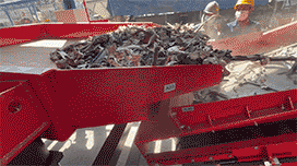 Металл с ломами передается в дроблентную камеру вертикального измельчителя через систему кормления.