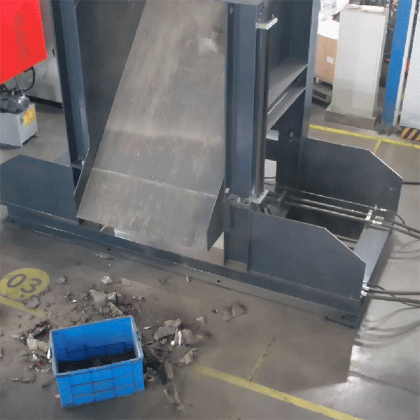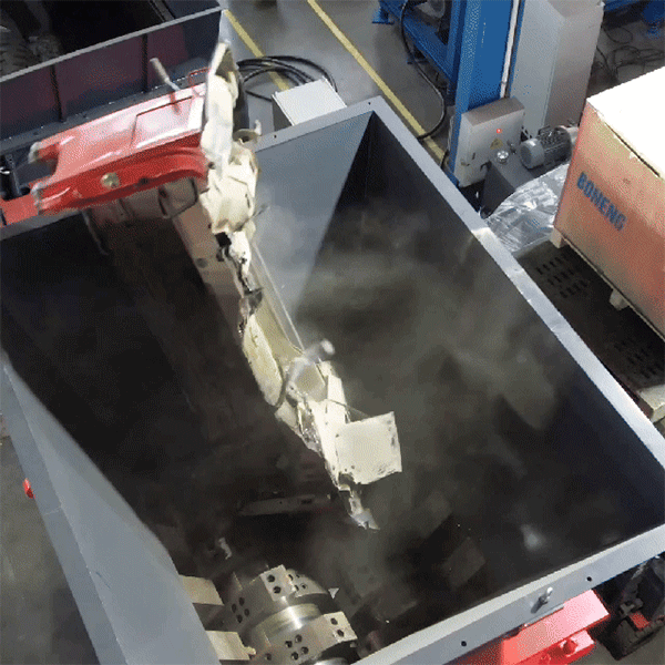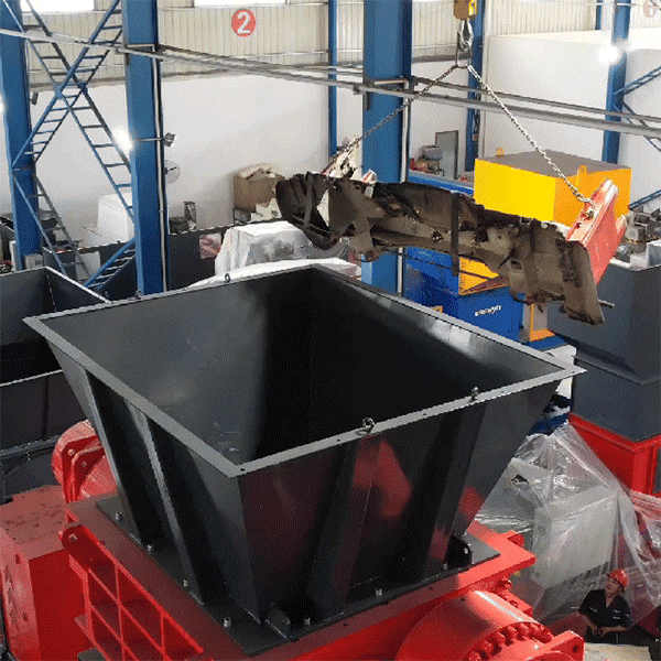 Большие компоненты отработанного металла поднимаются в камеру измельчения.