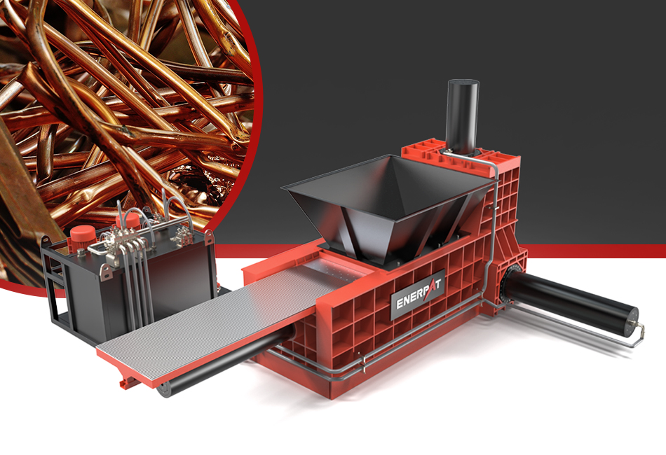 Завод использует пресс Enerpat Amb-H2014-250, который эффективно сжимает медный лом в высокоплотные тюки, экономит место для хранения и снижает транспортные затраты.